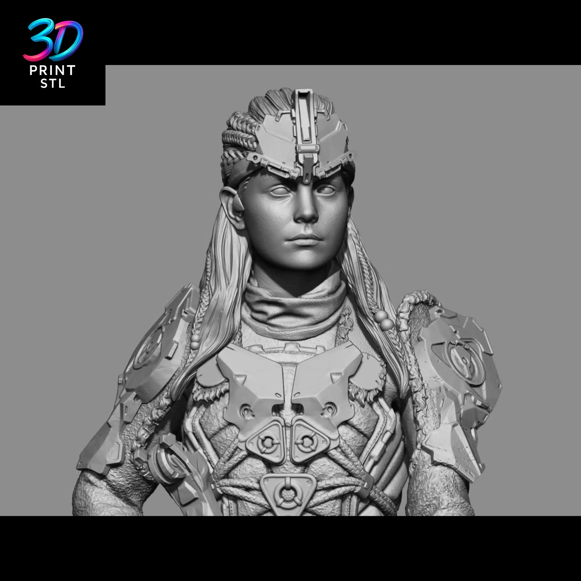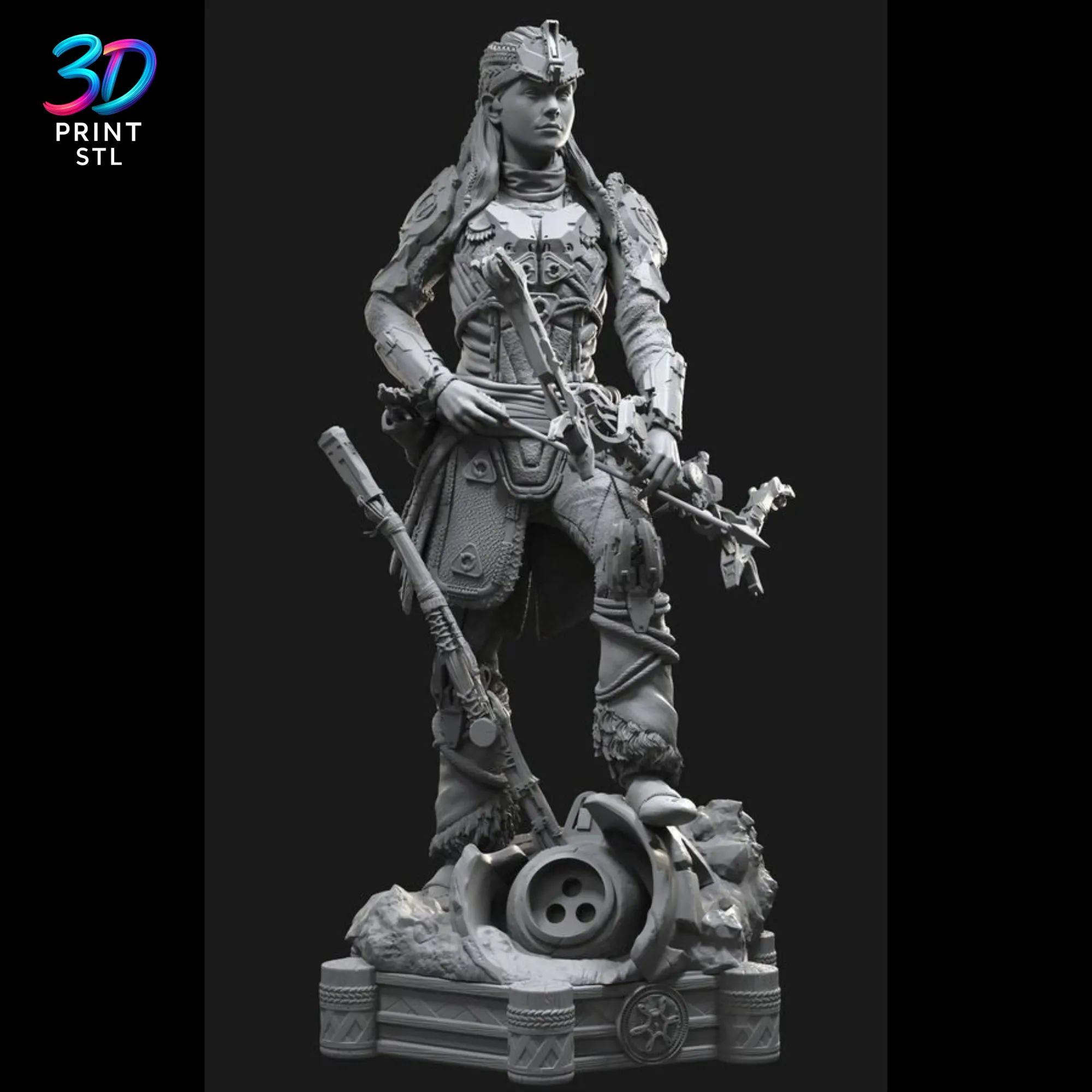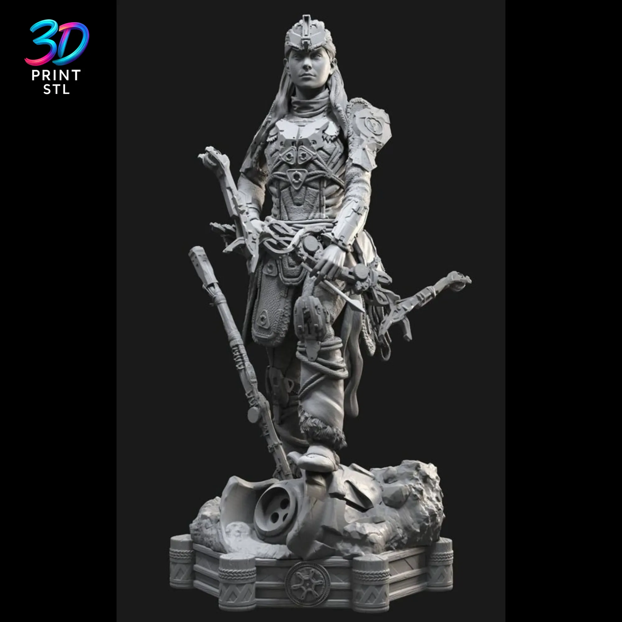 - Exceptional Detail: From the intricate braids in her hair to the tribal textures of her armor, this Aloy model is sculpted with stunning, game-accurate precision.