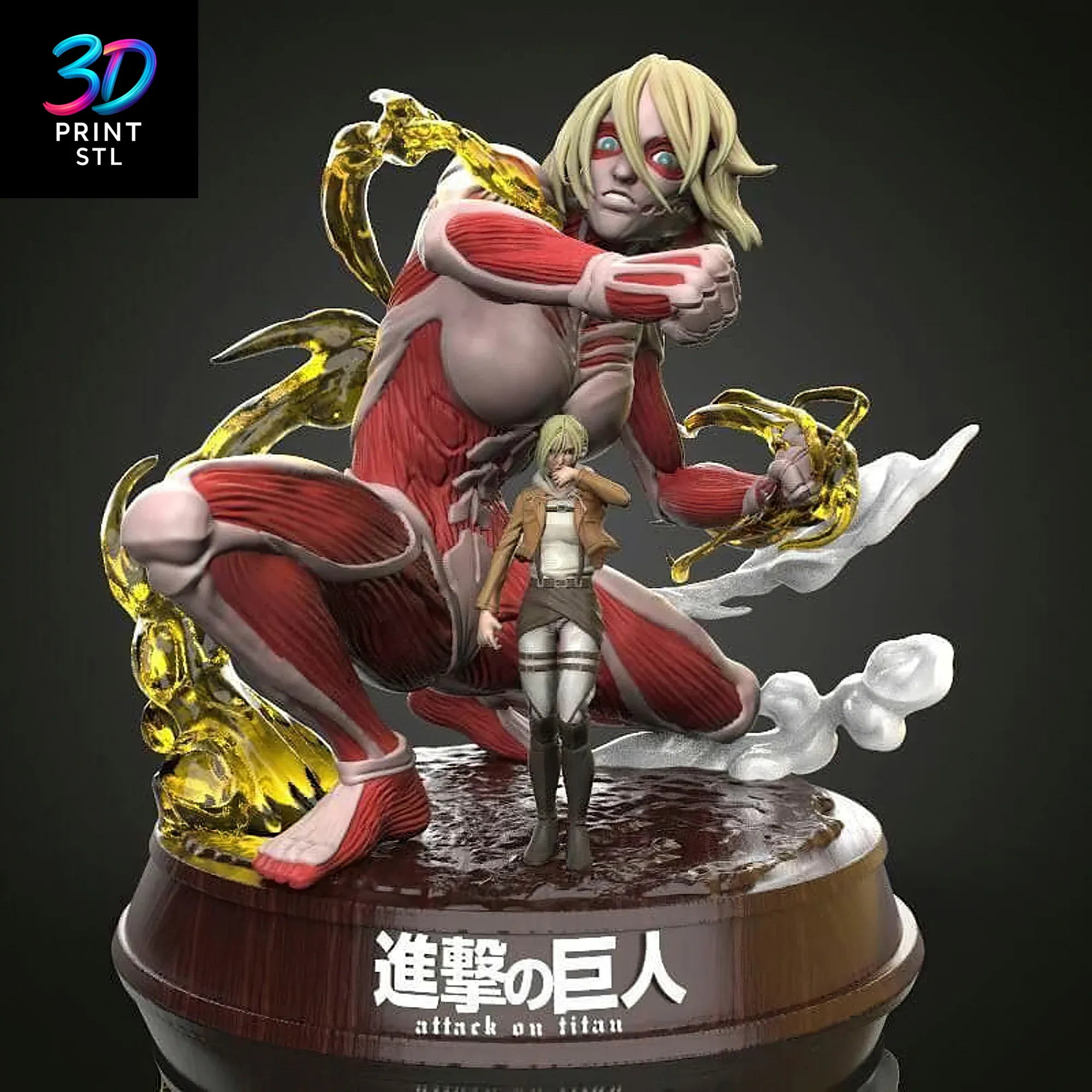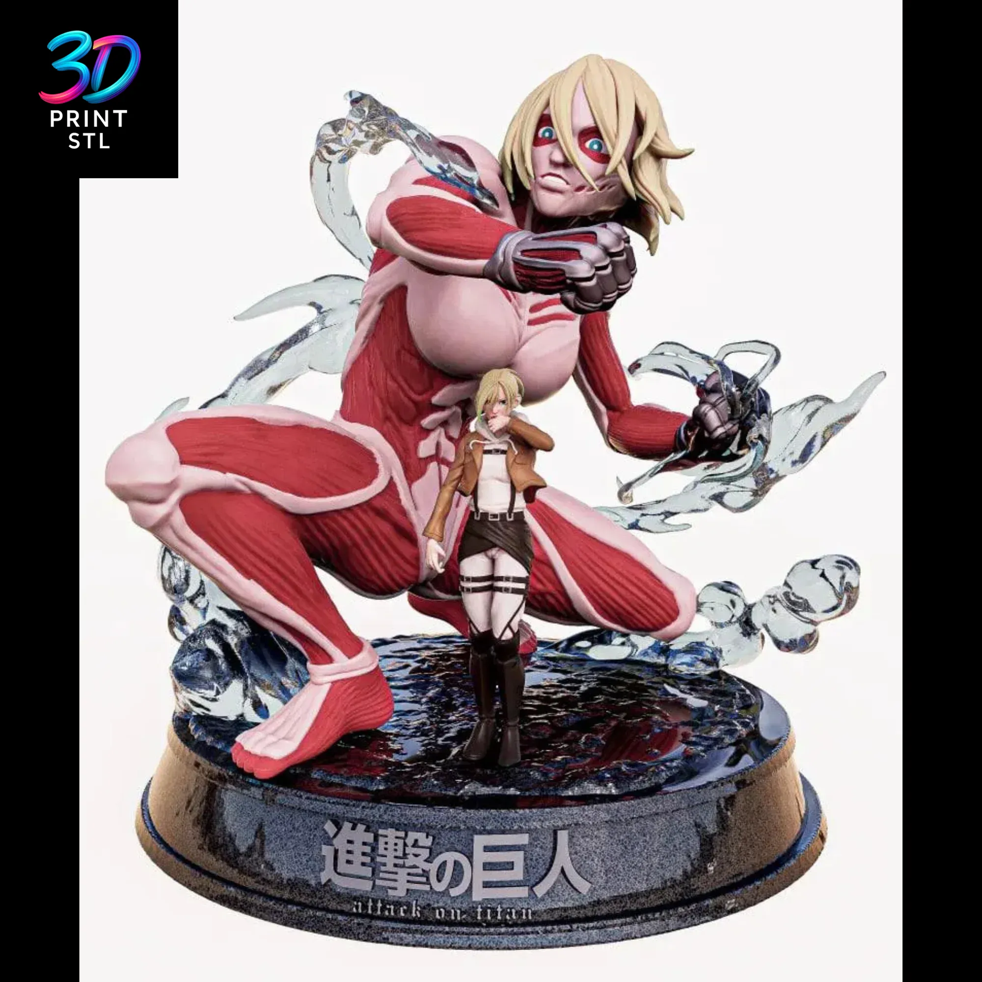 Unleash the formidable power of one of Shingeki no Kyojin’s most iconic characters with this stunning Annie & Female Titan Attack on Titan STL file for 3D Printing. This dynamically posed diorama captures the intense duality of Annie Leonhart and her fearsome Titan form, a premium model available exclusively for the community at 3dprintstl.com. Witness the incredible crystallization effect from her hardening ability, meticulously designed to bring this pivotal scene to life on your 3D printer.