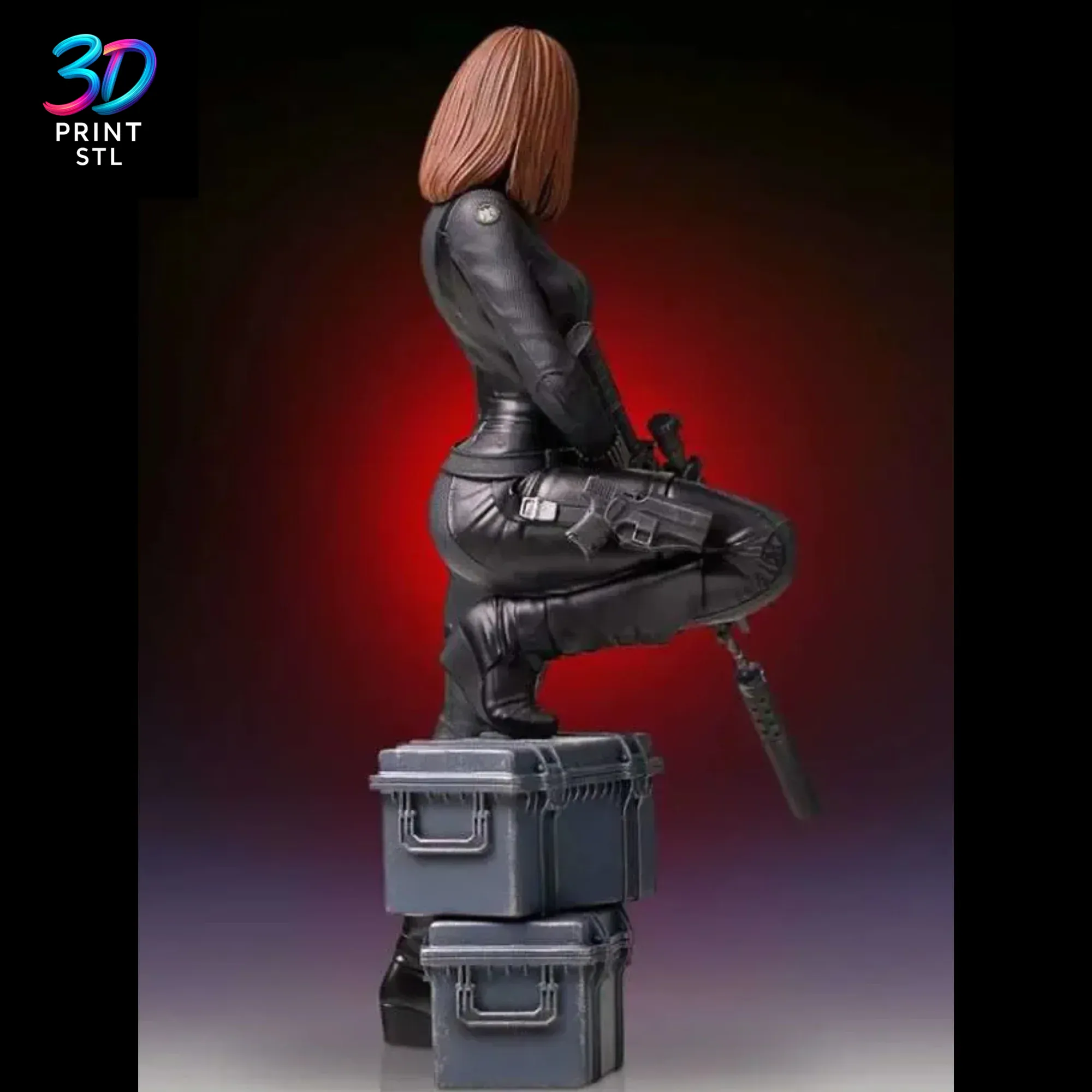 - Dynamic Action Pose: Black Widow is captured ready for combat, holding a tactical rifle, creating a powerful and engaging centerpiece for any collection.