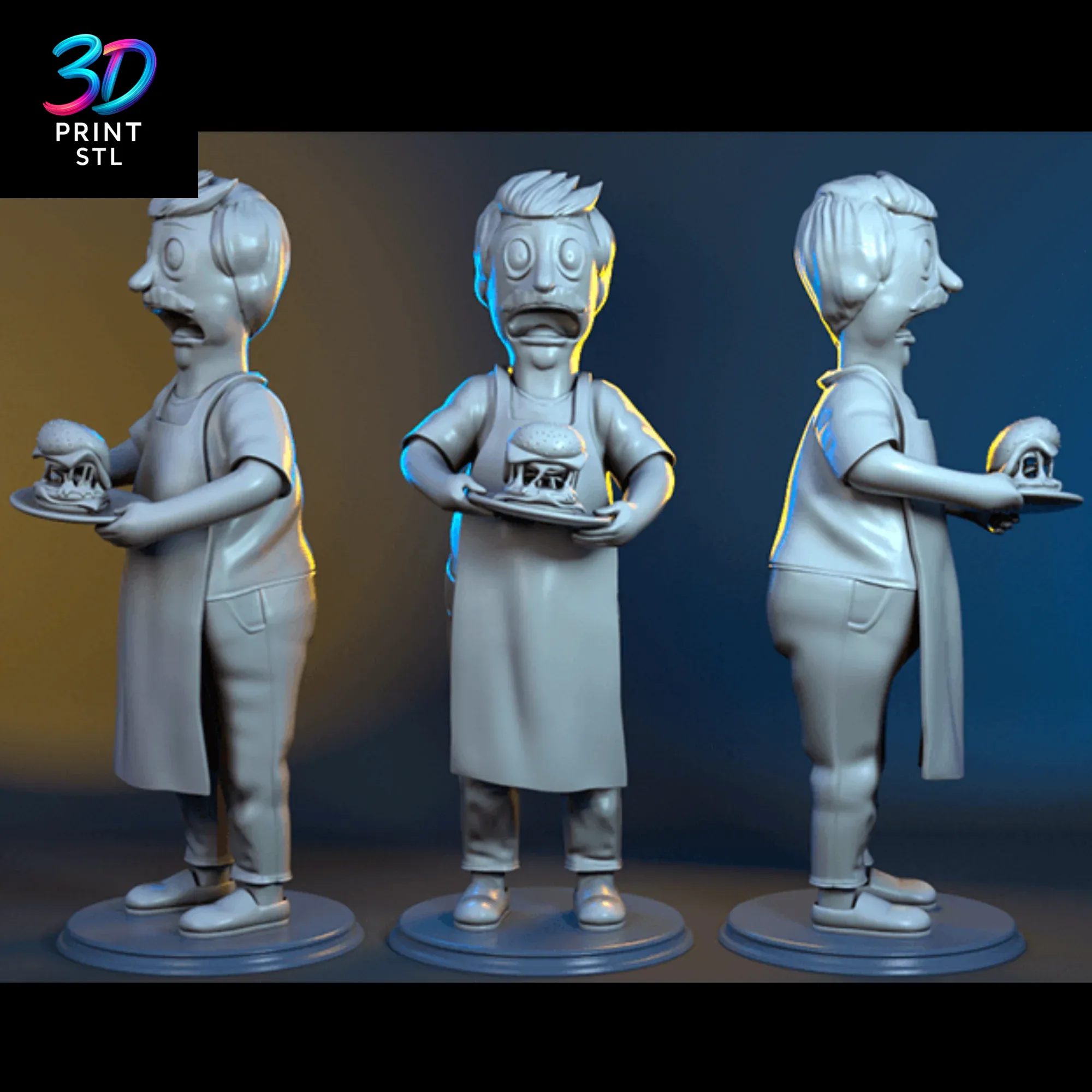 One (1) high-quality, multi-part STL file for the Bob Belcher Figure model, ready for your 3D printer and slicing software.