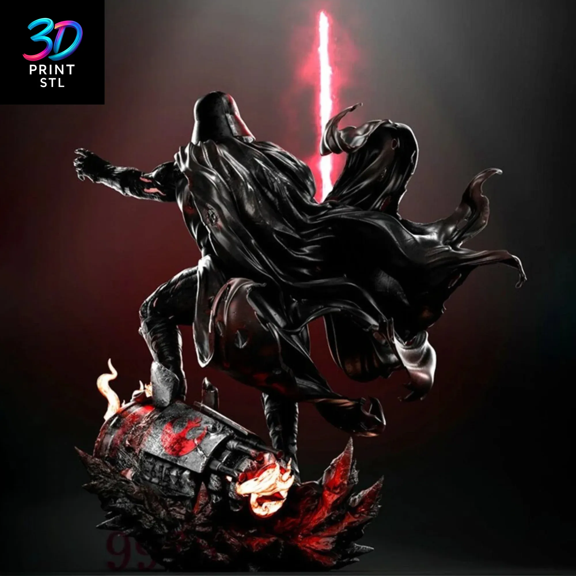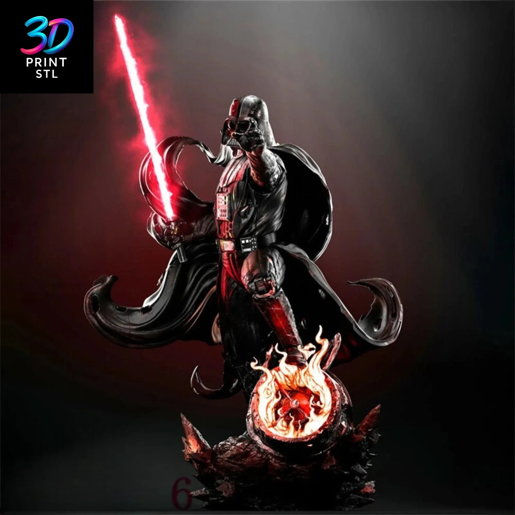 Unleash the power of the Dark Side on your 3D printer with this epic Darth Vader Star Wars | 3D Print Model | STL. This dynamic sculpture captures the iconic Sith Lord in a commanding action pose, lightsaber ignited, standing atop a detailed base of molten lava and twisted steel reminiscent of Mustafar. This premium model, designed for true fans and collectors, is a standout piece in the 3dprintstl.com collection, offering a cinematic and powerful printing experience.
