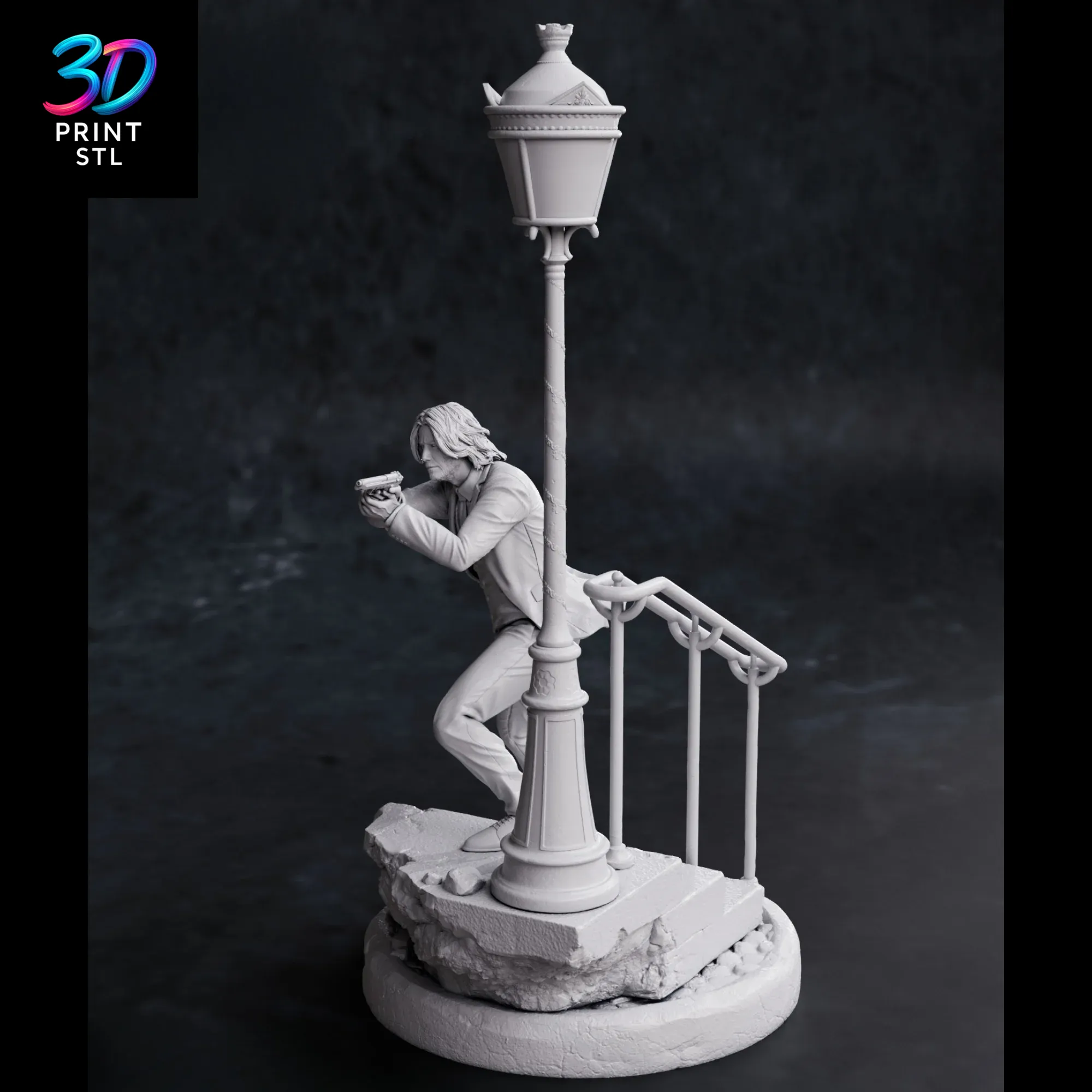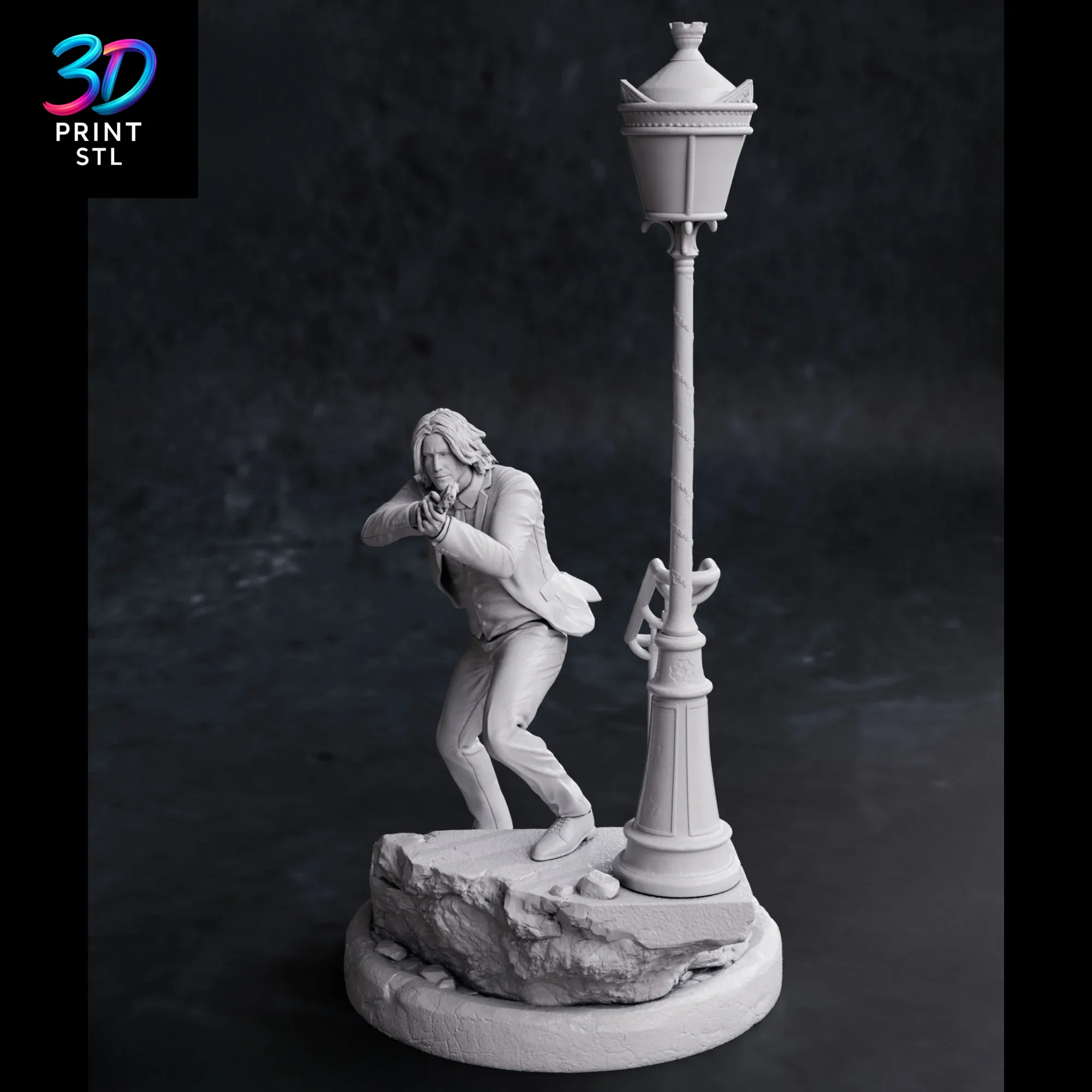 - Dynamic Action Pose: The figure is set on a detailed urban base with a streetlamp and railing, creating a compelling, story-driven scene straight out of the movies.