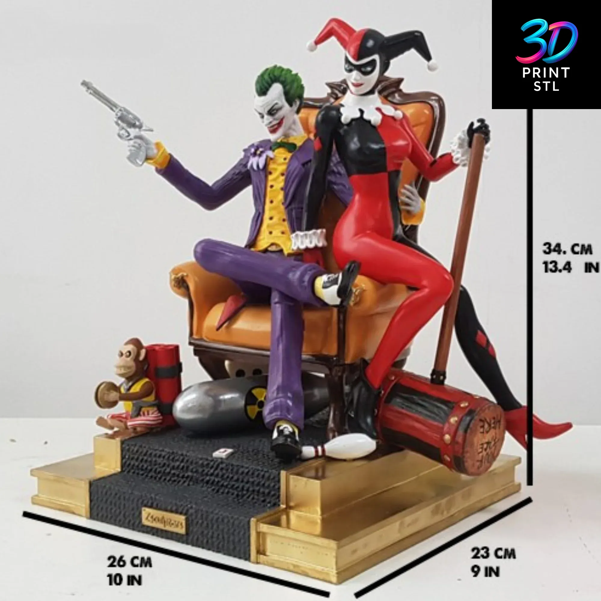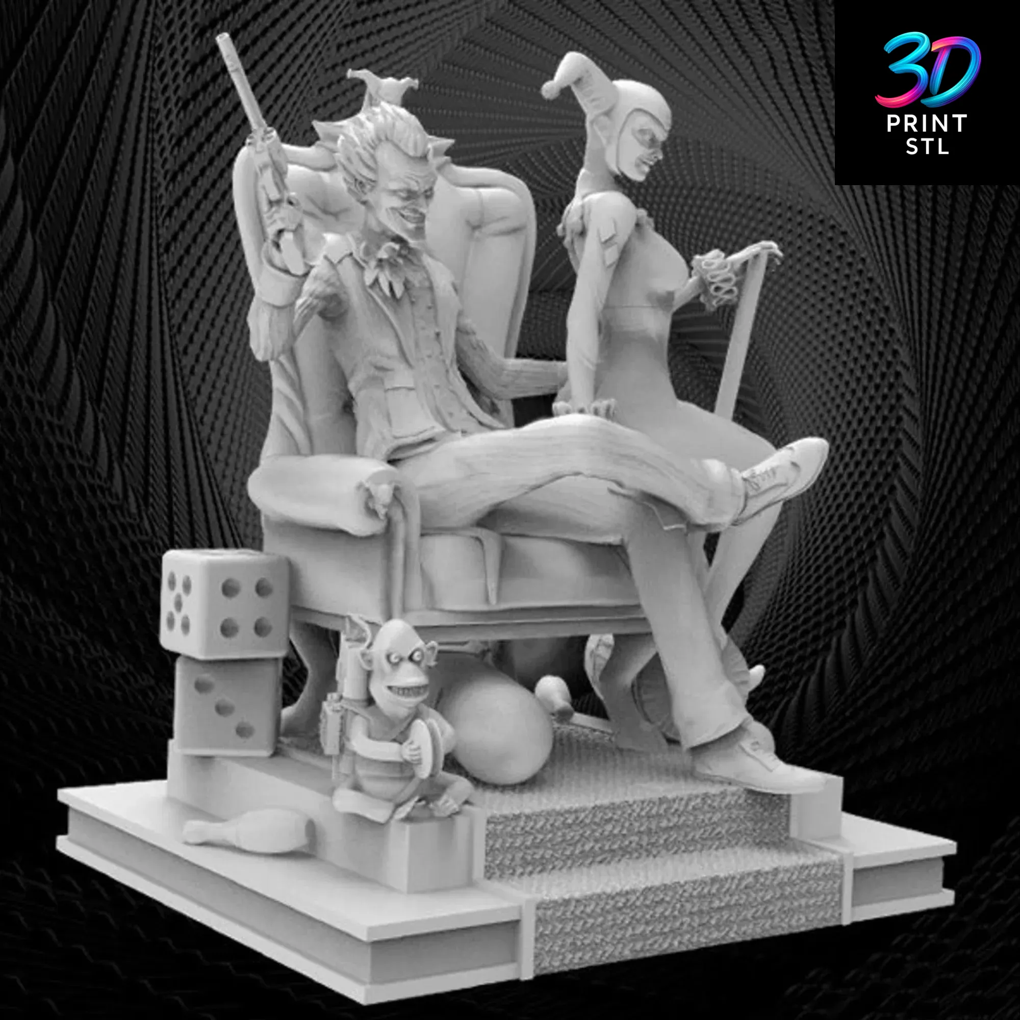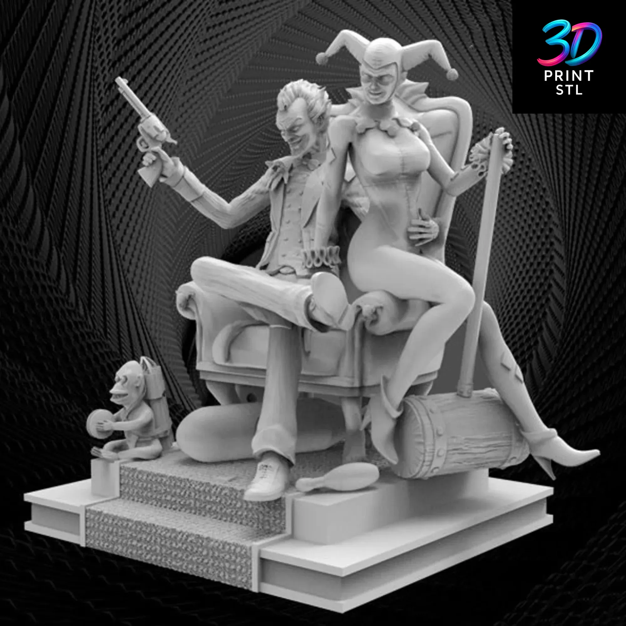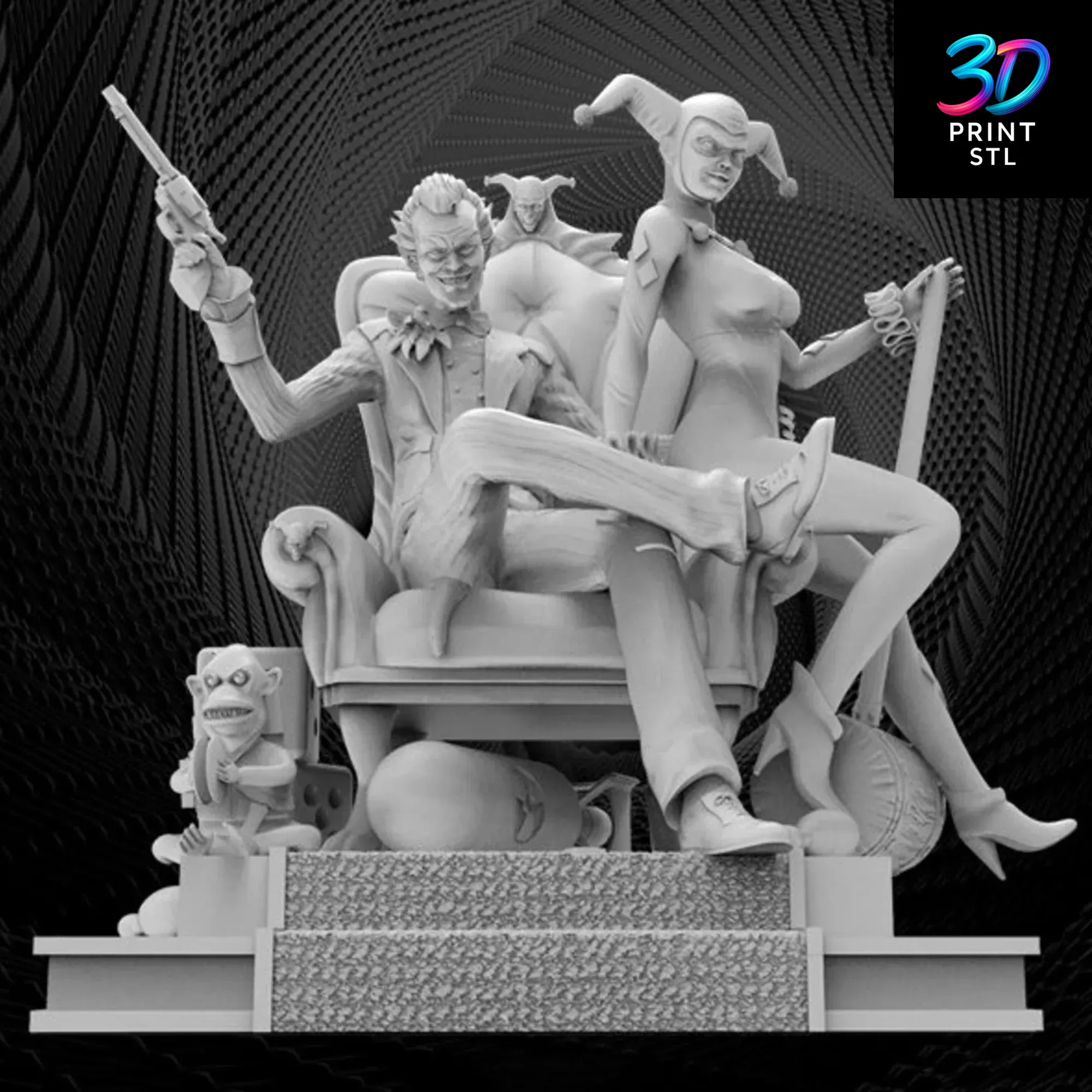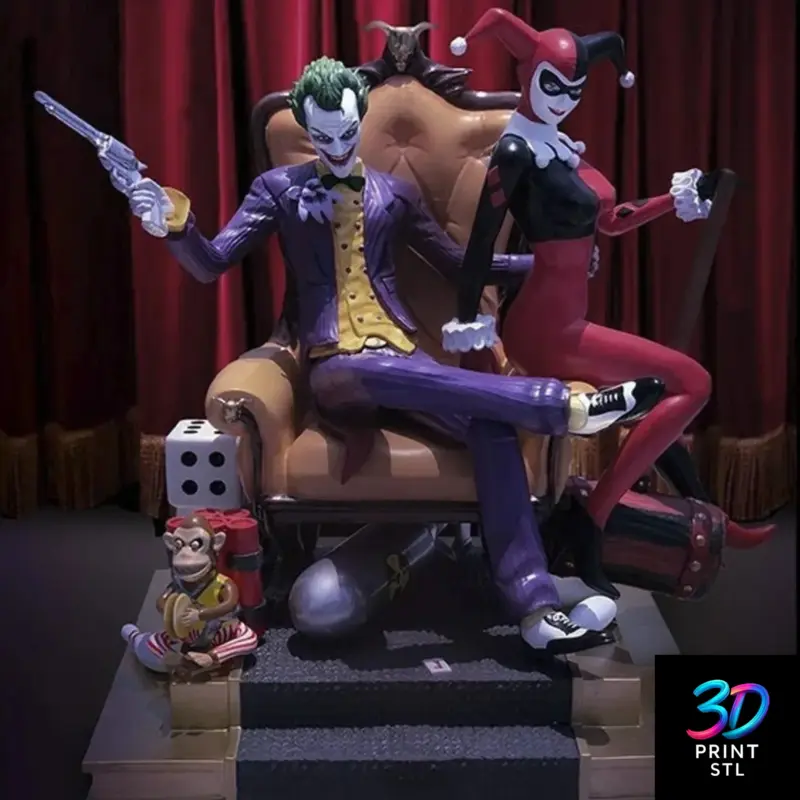A set of high-quality, pre-separated STL files for the Joker and Harley Quinn Diorama, ready for your 3D printer.