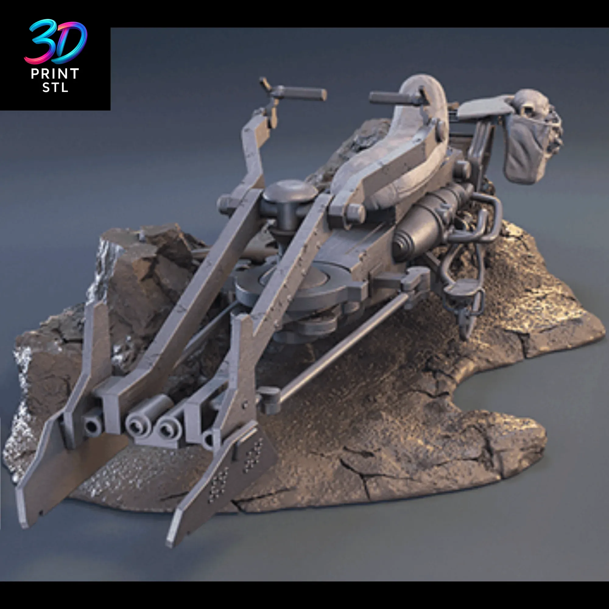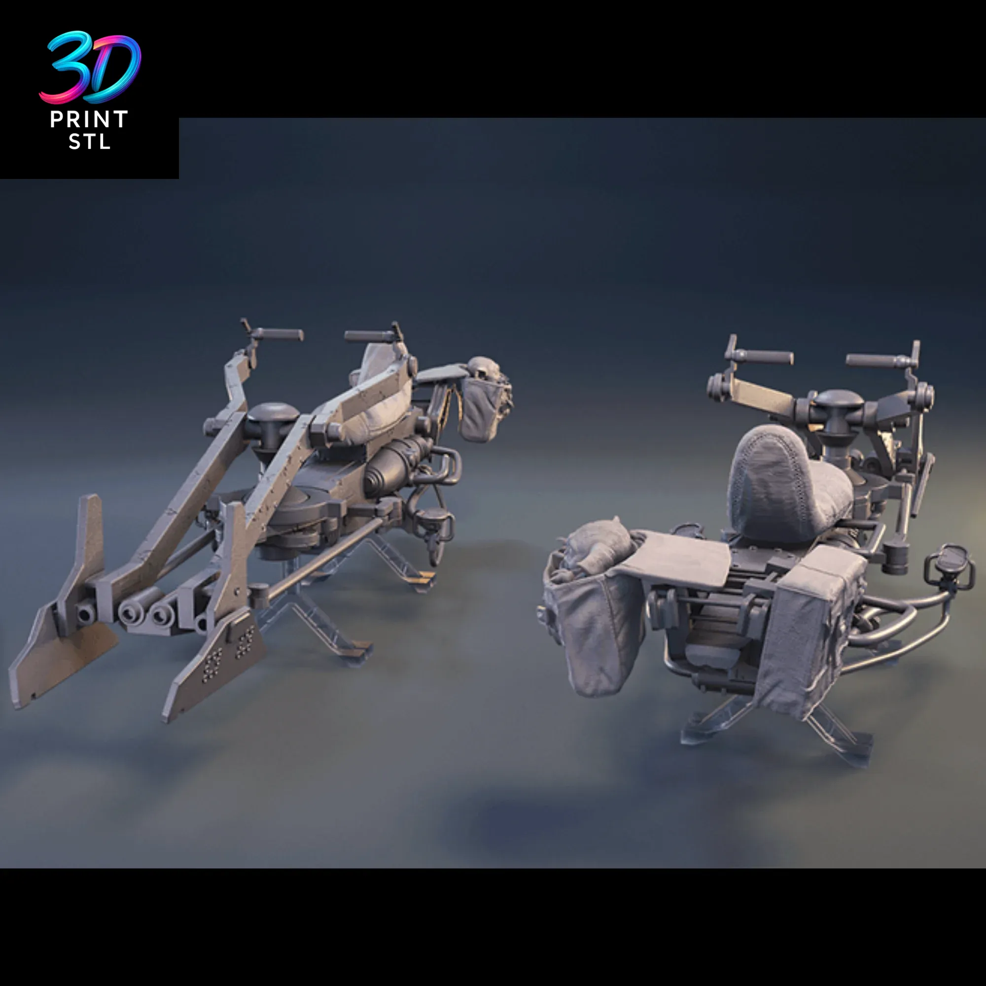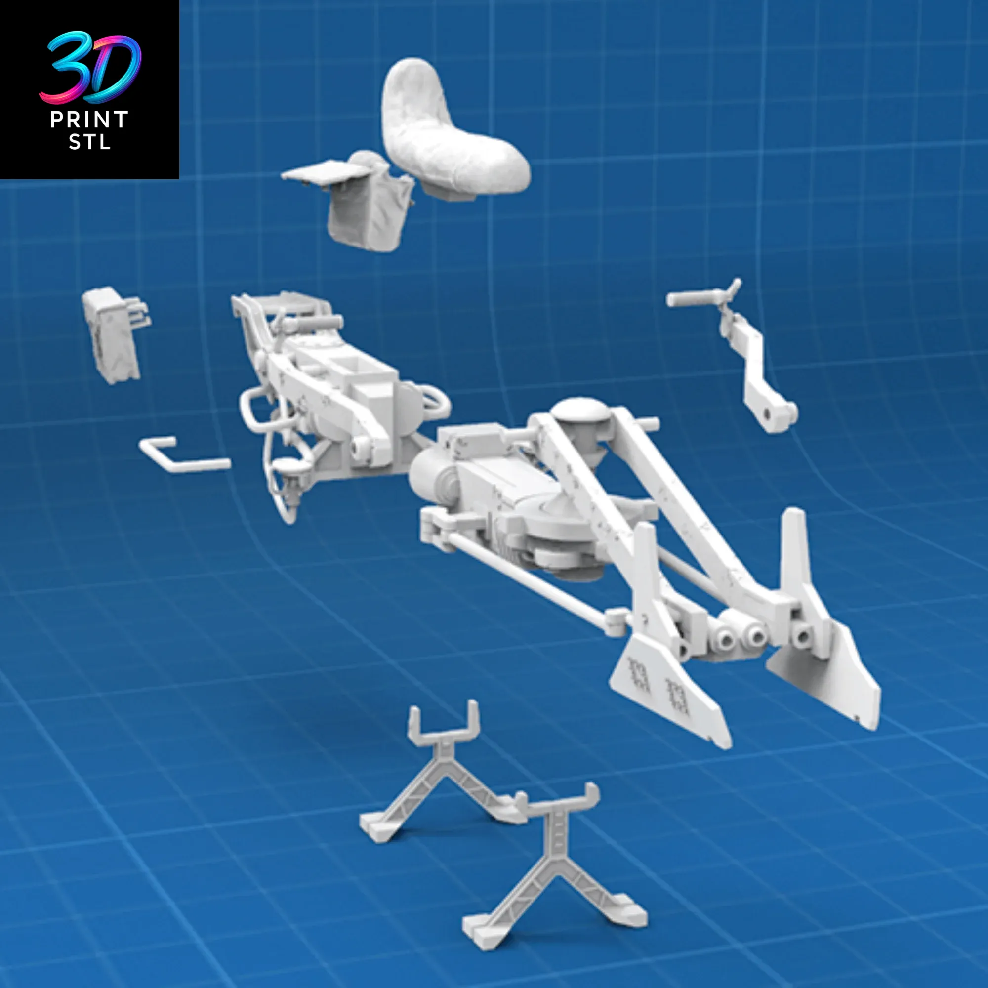 One (1) high-quality, multi-part STL file for the Mandalorian Speeder Bike Figure model, ready for your 3D printer.