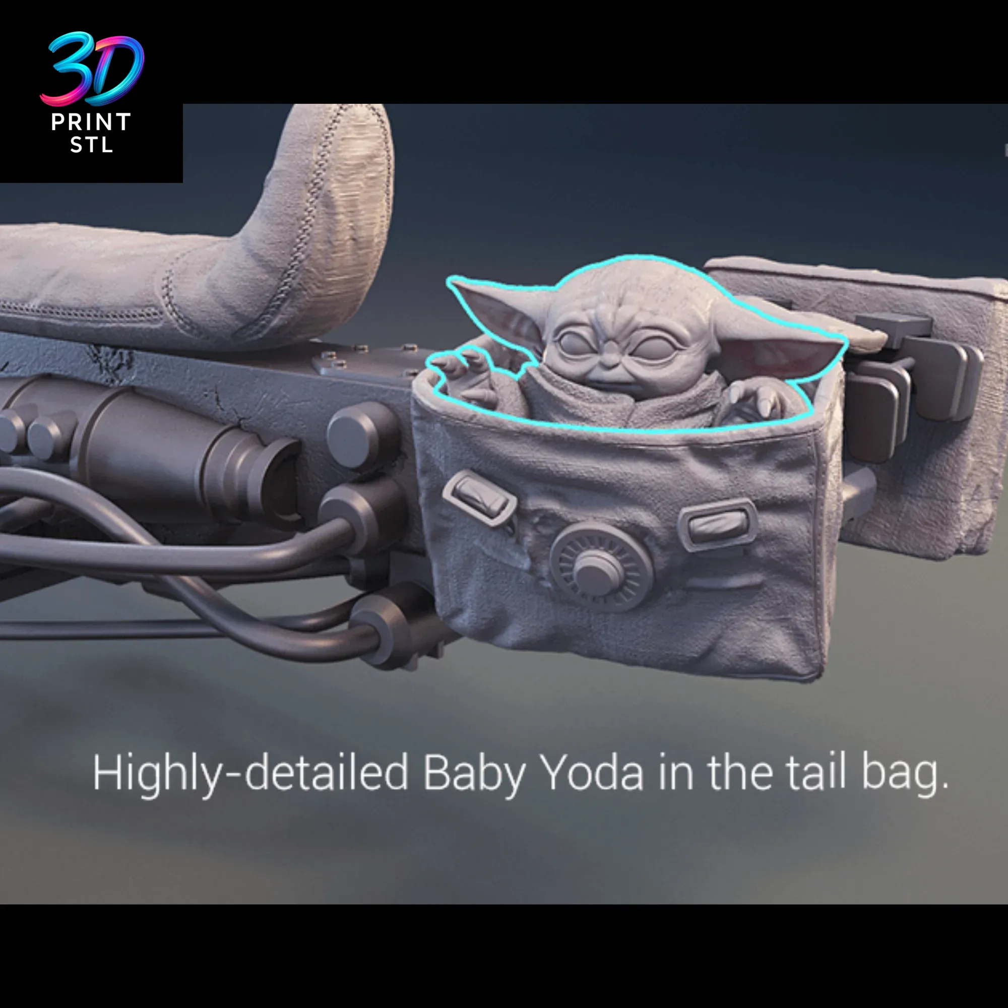 - Adorable Grogu Included: This unique 3D print file features a charming, chibi-style Grogu (Baby Yoda) sculpted into the rear satchel, adding a touch of heart to this rugged vehicle.