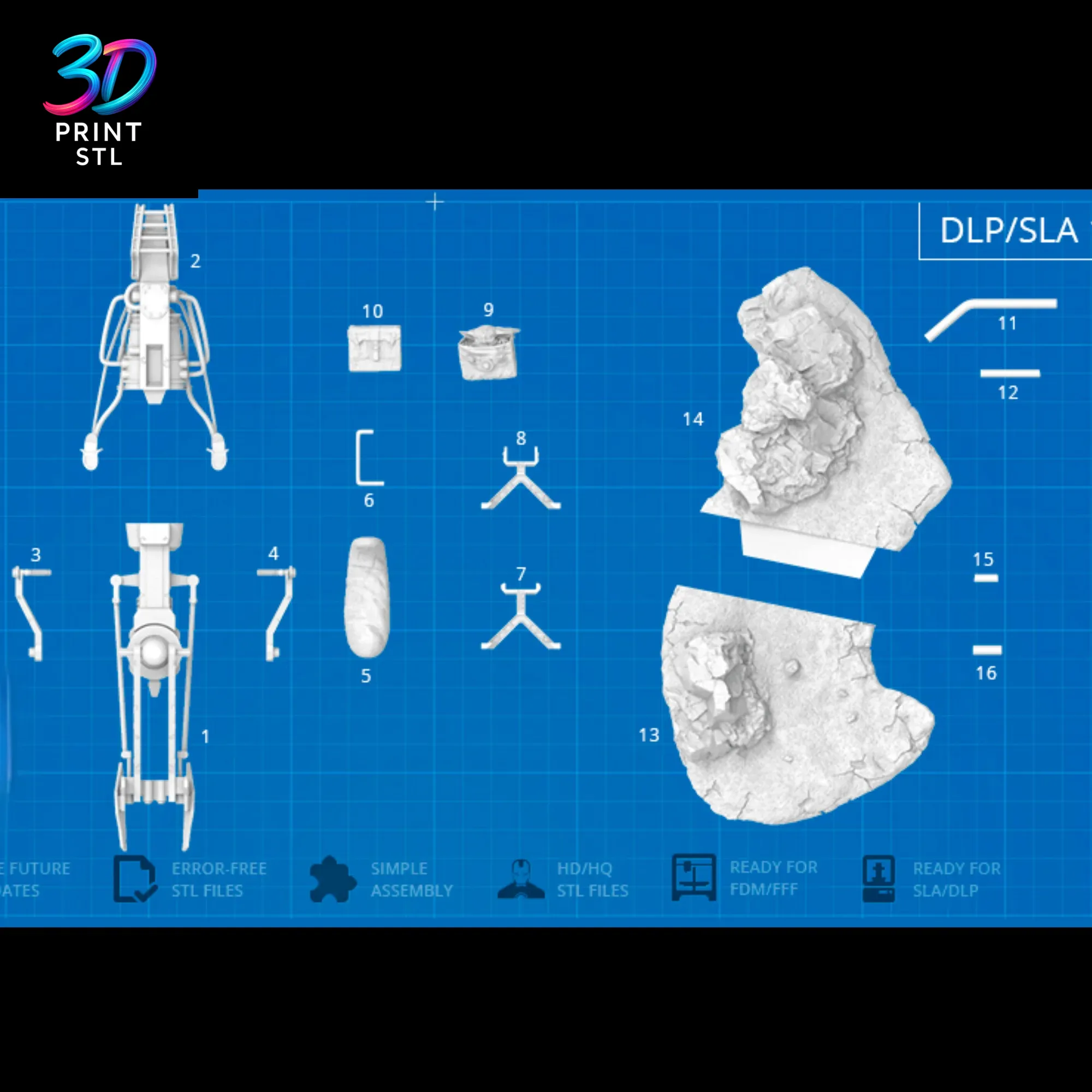- Dynamic Display Base: The STL comes with a detailed, rocky terrain base, perfect for creating a stunning diorama that evokes the harsh landscapes of a galaxy far, far away.
