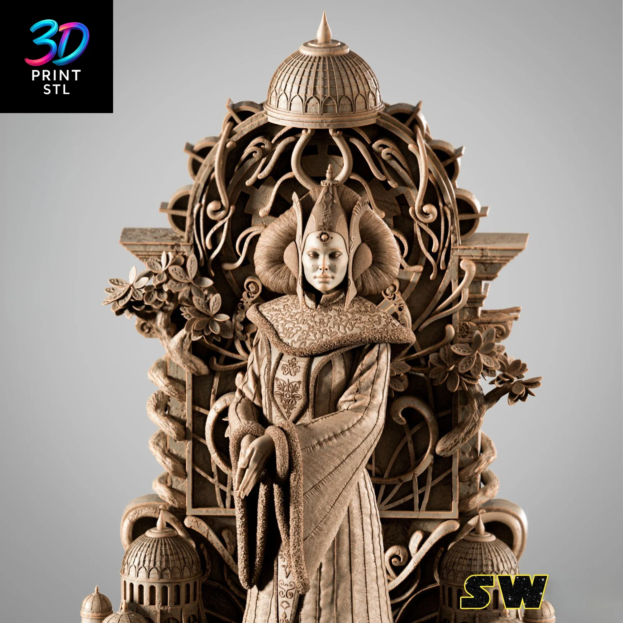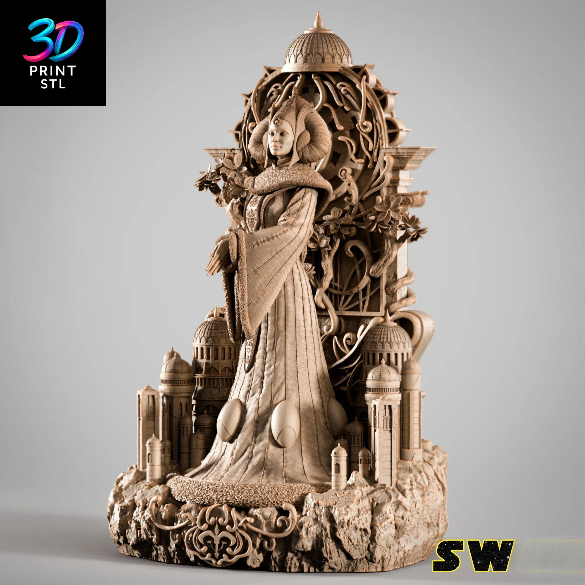 Capture the regal grace and unwavering strength of the Queen of Naboo with this breathtaking Padmé Amidala Diorama Star Wars | 3D Print File. This exquisitely detailed digital sculpture depicts Padmé in her iconic royal gown and headdress, framed by the elegant architecture of her homeworld. Designed for discerning collectors and Star Wars fans, this premium model is a masterpiece of digital artistry and a standout addition to the 3dprintstl.com collection.