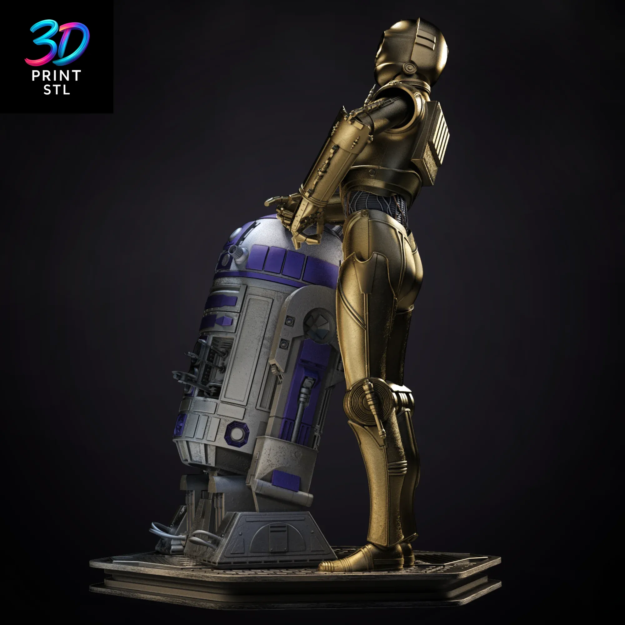 One (1) high-quality STL file for the R2D2 and C3PO Figure Star Wars model, ready for your 3D printer.