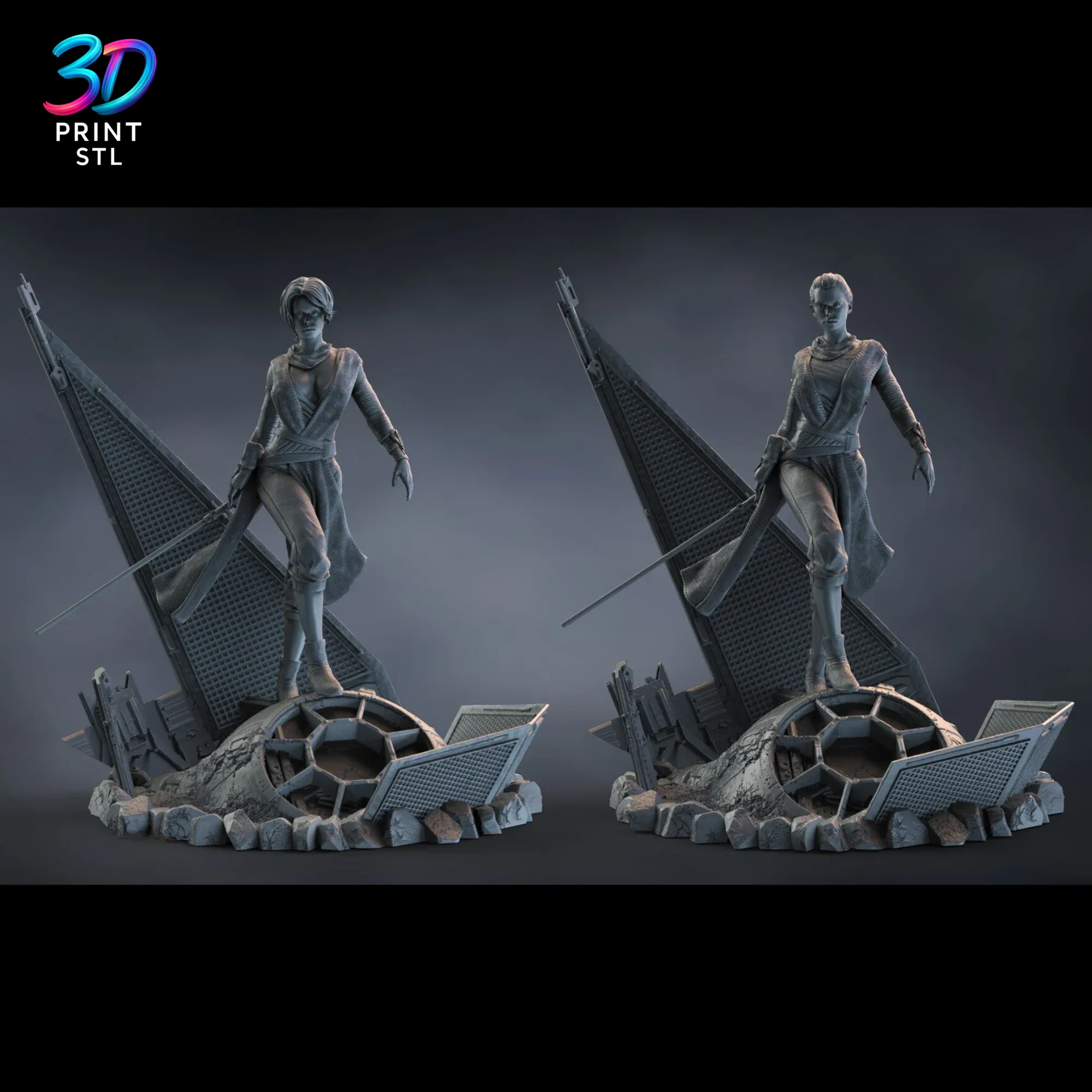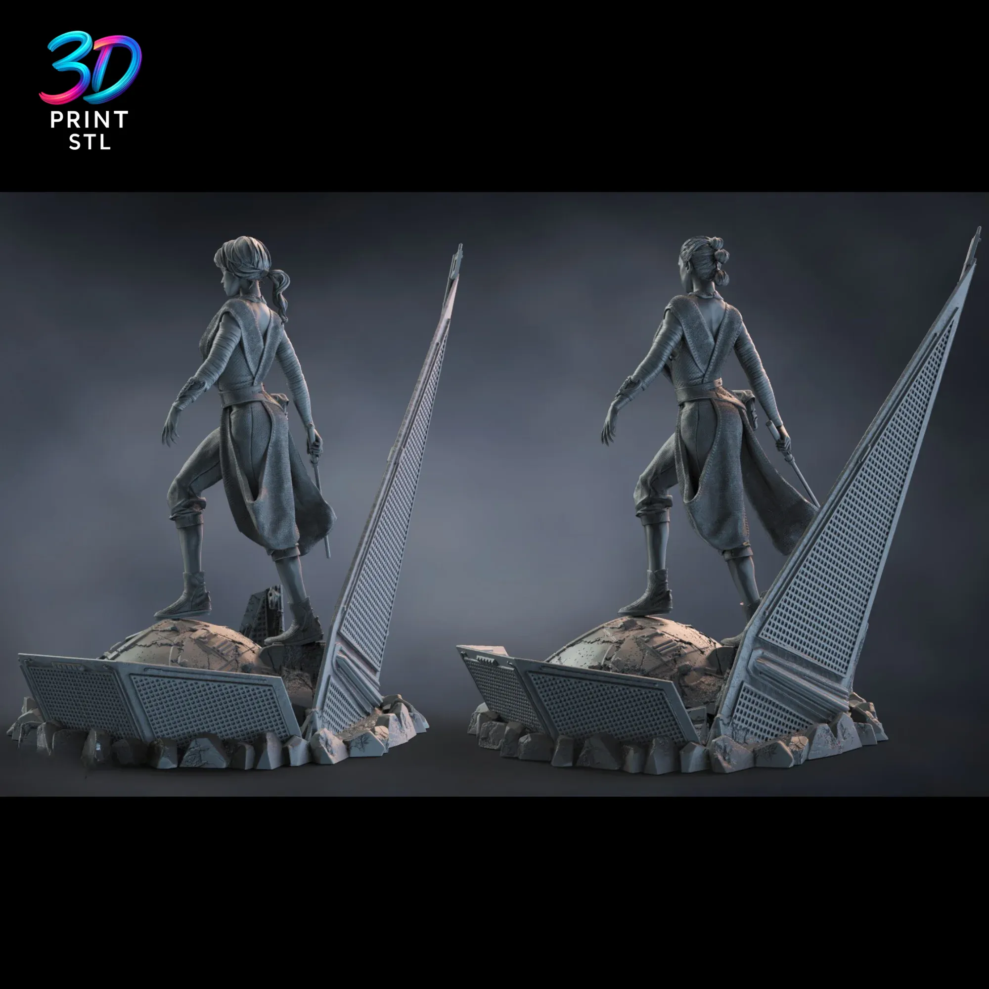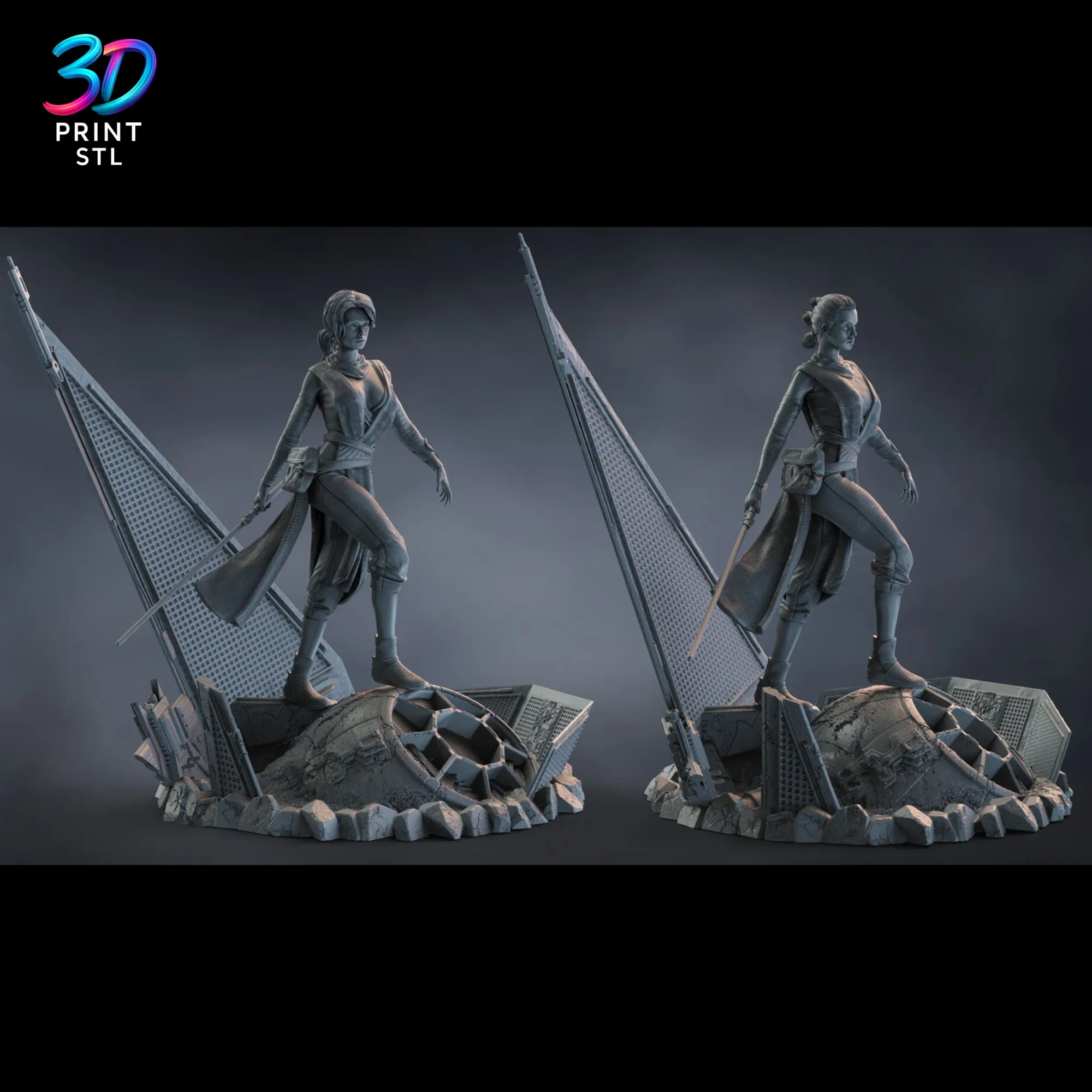 Bring the power of the Force to your collection with this stunning Rey Star Wars STL File for 3D Printing. This exquisitely detailed model captures the resilience and strength of the Jedi hero, ready for you to bring to life. Featuring two distinct character versions and a cinematic base depicting the wreckage of an Imperial Star Destroyer, this premium model, a standout in the 3dprintstl.com collection, is a must-have for any Star Wars enthusiast.