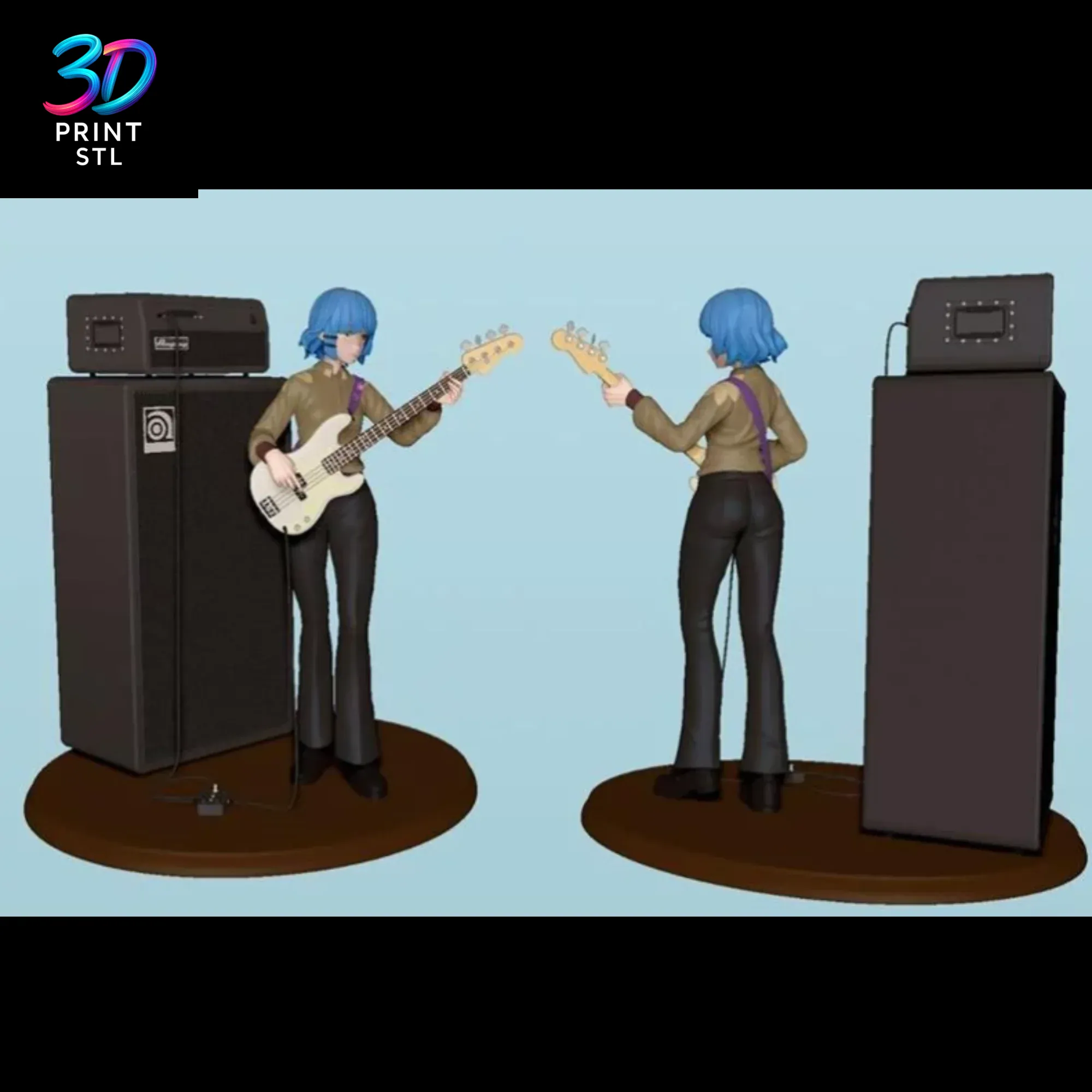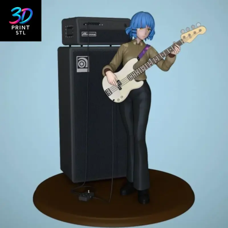 - Anime-Accurate Detail: Every nuance of Ryou Yamada is sculpted with precision, from her calm expression and iconic blue hair to her accurately modeled bass guitar, complete with strings and tuning pegs.