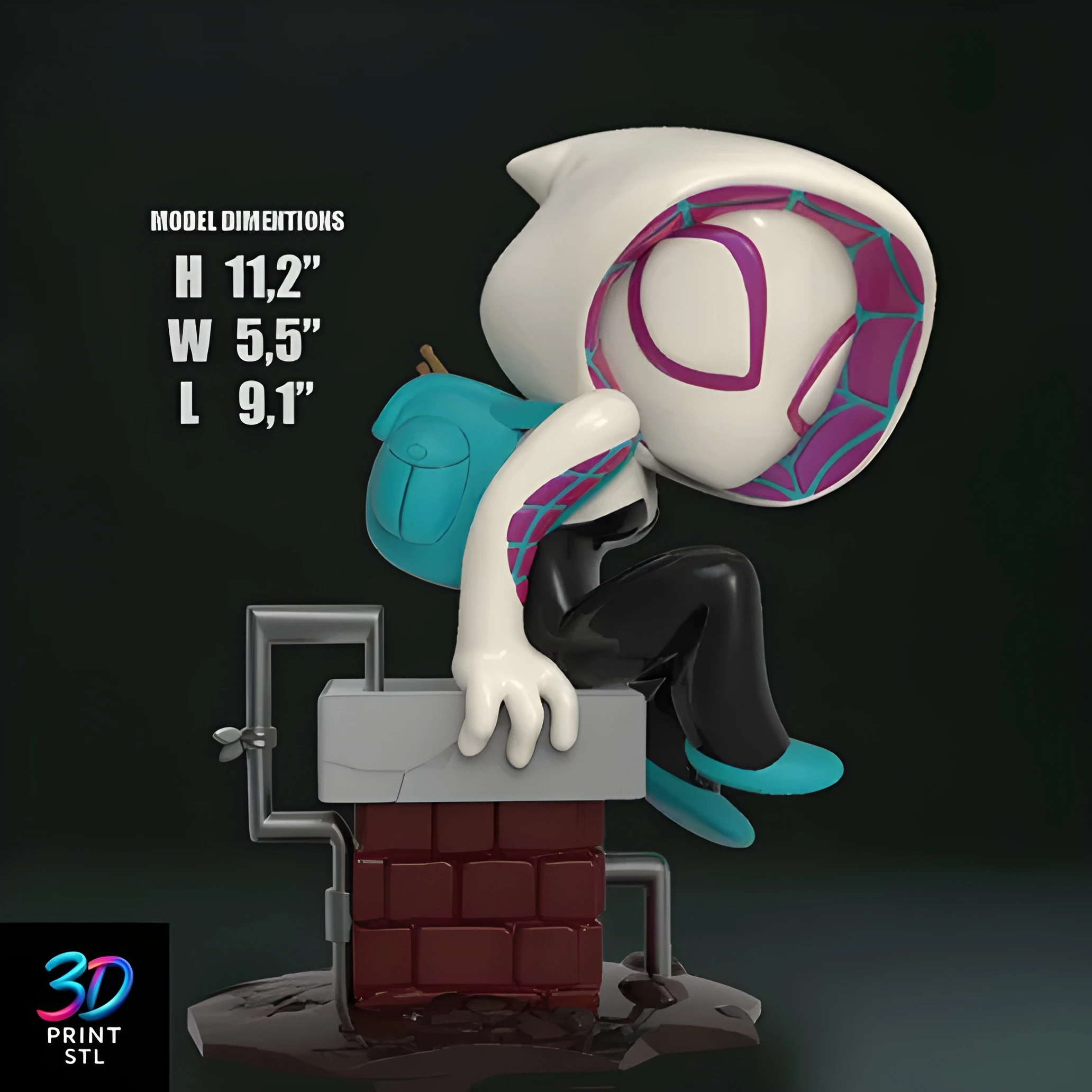 - High-Resolution STL File: This expertly crafted model ensures a clean, high-quality print, preserving the fine details of Spider Gwen’s iconic suit and mask.