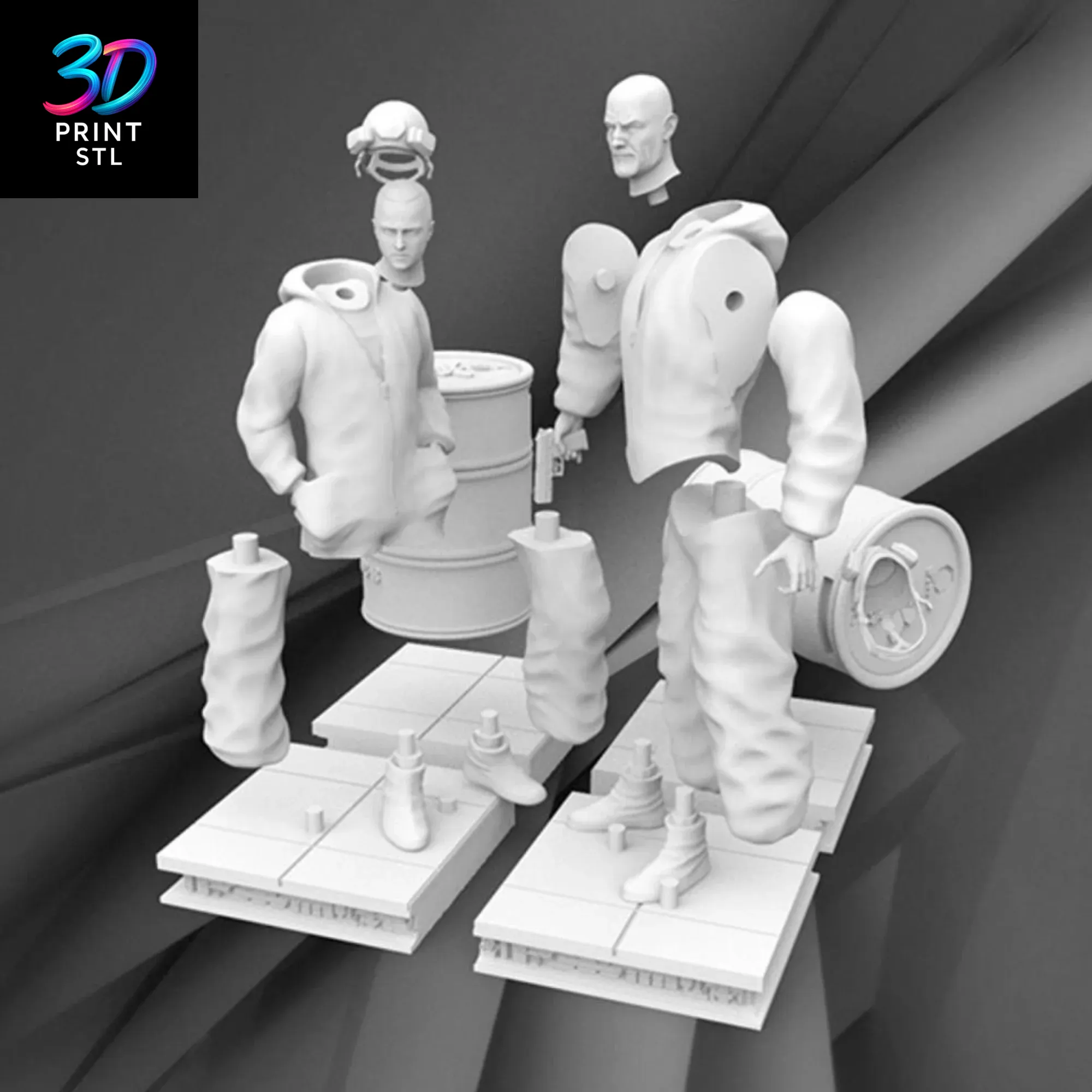 A complete set of high-quality, modular STL files for the Walter White & Jesse Pinkman Diorama, optimized and ready for your 3D printer.
